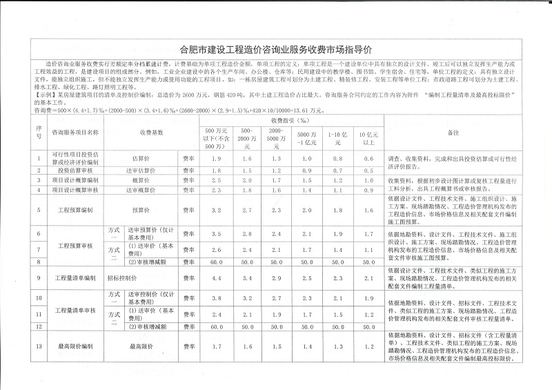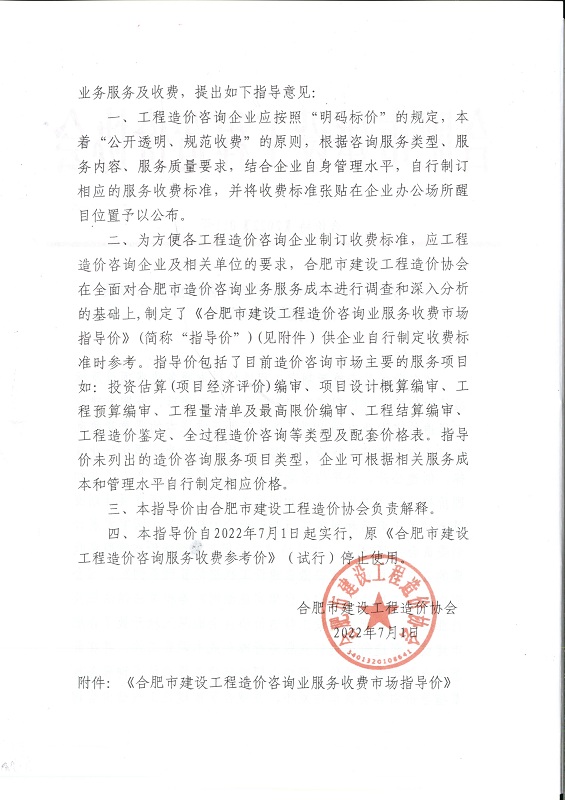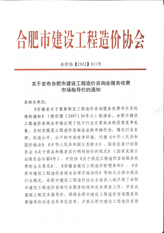 关于发布合肥市建设工程造价咨询业服务收费市场指导价的通知