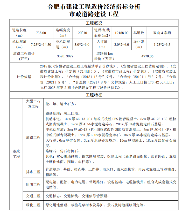 2023年4月合肥市建设工程造价经济指标分析--市政道路建设工程