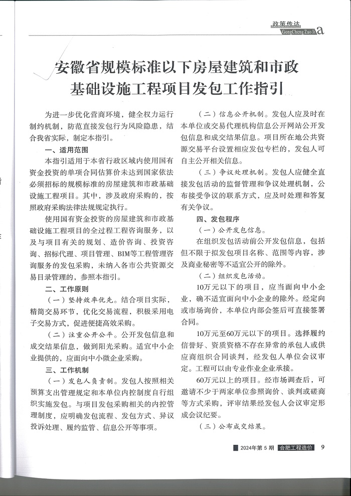 安徽省规模标准以下房屋建筑和市政基础设施工程项目发包工作指引