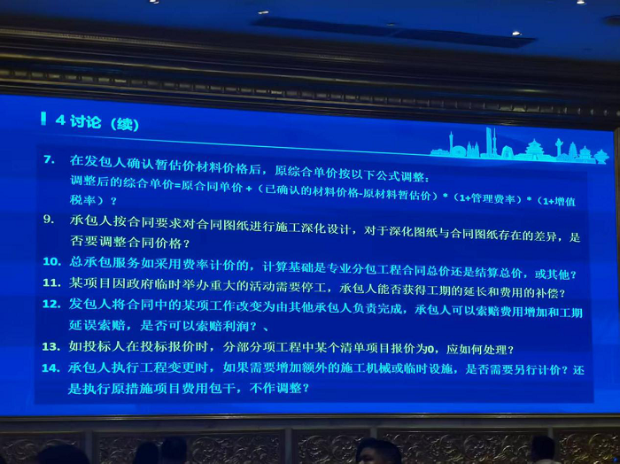 5月22日全天由原利比建设咨询(上海)有限公司总经理王伟庆深度解读了全过程造价控制与工程量清单计价/计算标准的应用,结合真实案例剖析实操要点,为参会者提供精准指导,并在会议结束后结合此次交流内容提出21个问题与大家深刻讨论交流。