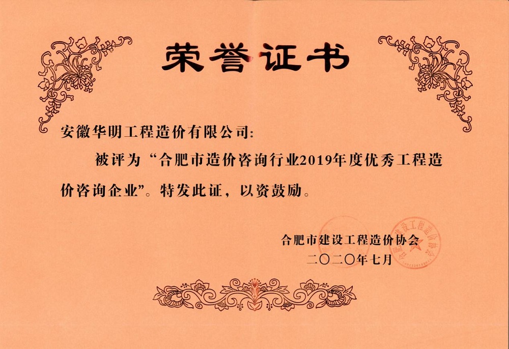 2019年度优秀工程造价咨询企业
