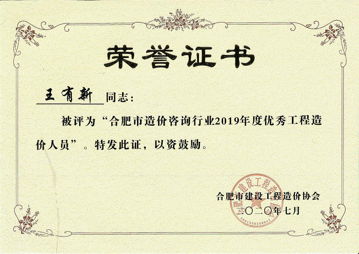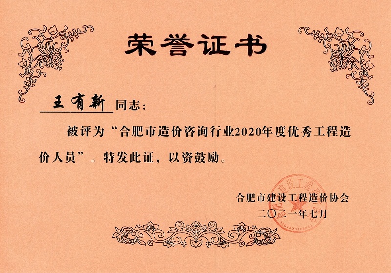 2020年度优秀造价人员--技术负责人王有新
