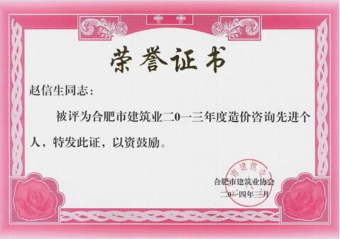 2013年度先进个人-一级造价师赵信生