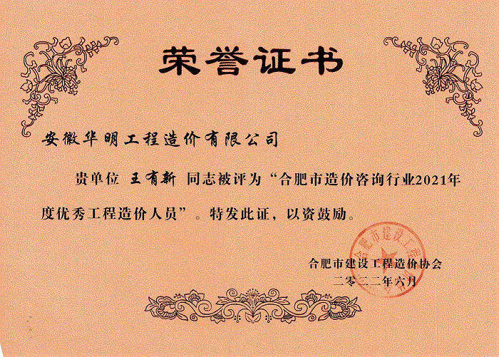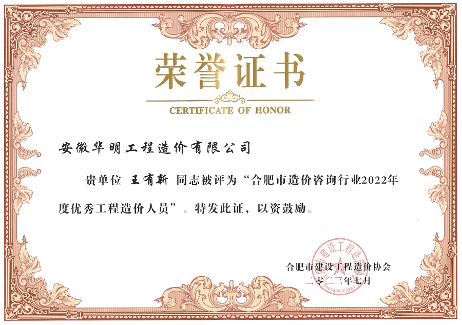 2022年度优秀造价人员--技术负责人王有新