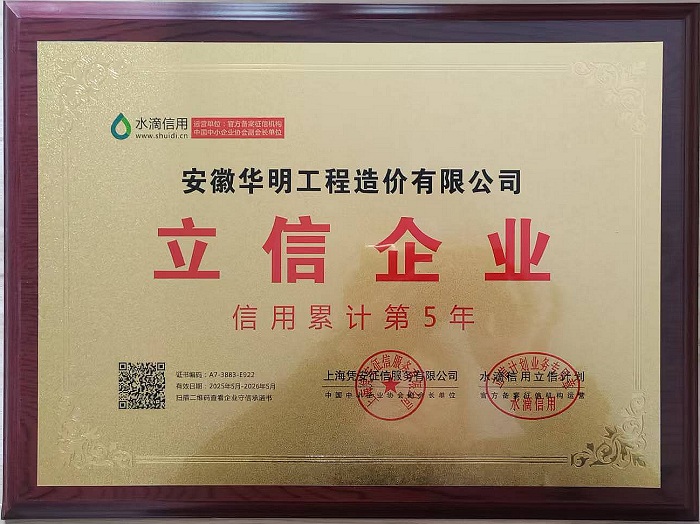 2025年被水滴信用评为“信用累计第5年立信企业”